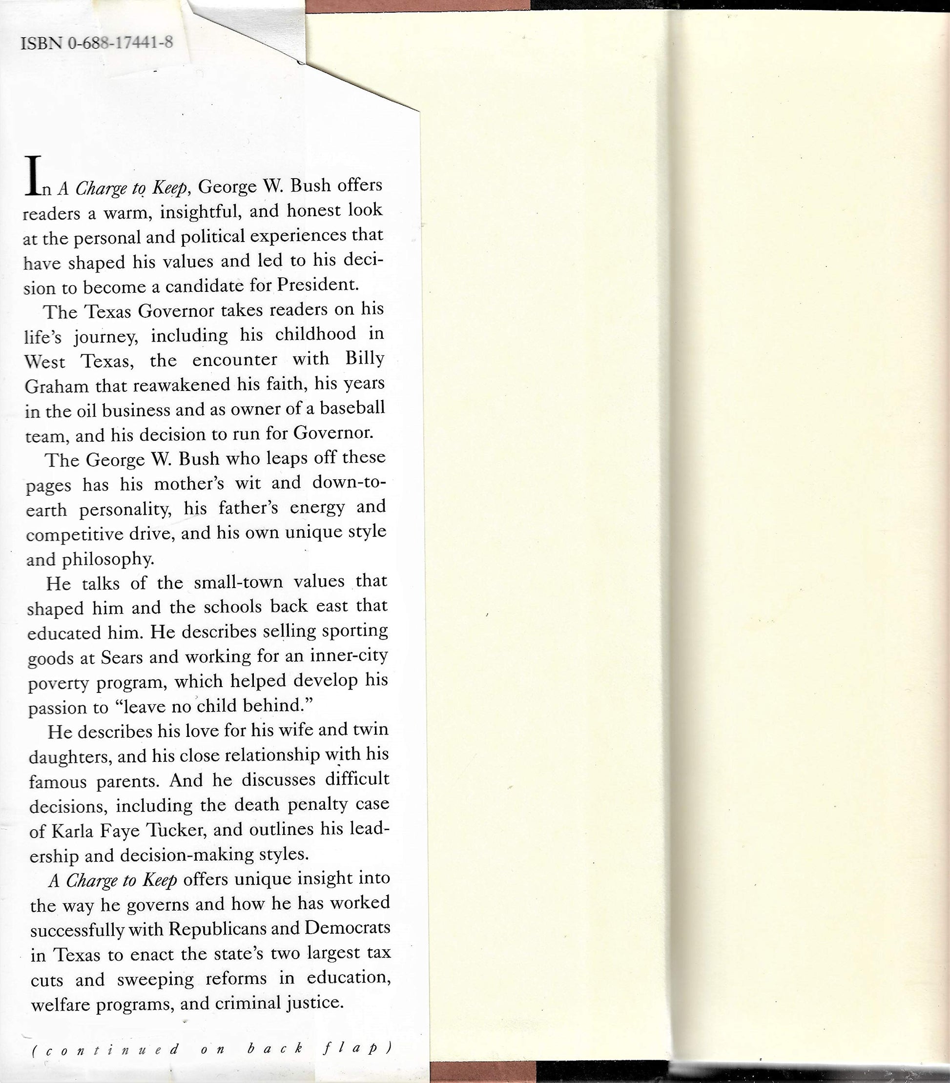 Will George W. Bush become the next president of the United States? A Charge to Keep will help the American public decide., ISBN13:9780688174415 ISBN10:0688174418 Material Type:hardcover